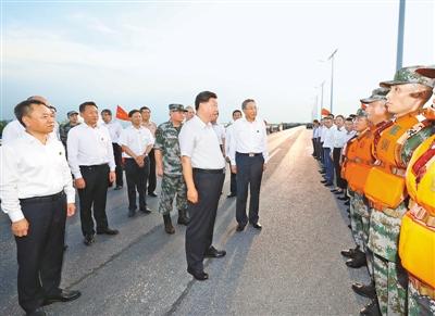 大堤上,習近平親切看望慰問(wèn)了在防汛抗洪救災斗爭中犧牲同志的家屬、防汛抗洪一線(xiàn)人員、先進(jìn)典型代表和參加抗洪搶險的部隊官兵,并向全國奮戰在防汛抗洪救災一線(xiàn)的同志們表示誠摯的問(wèn)候。他強調,今年入汛以來(lái),南北方江河湖泊接連出現超警戒水位險情。廣大干部群眾和人民解放軍、武警官兵堅決響應黨和政府號召,發(fā)揚不怕累苦、不怕疲勞、不怕?tīng)奚木穸分?,堅守在防汛抗洪救災第一線(xiàn),涌現了許多先進(jìn)典型和感人事跡,展現了中國人民眾志成城、頑強拼搏、敢于勝利的英雄氣概,書(shū)寫(xiě)了洪水無(wú)情人有情的人間大愛(ài)。黨和人民感謝你們!
