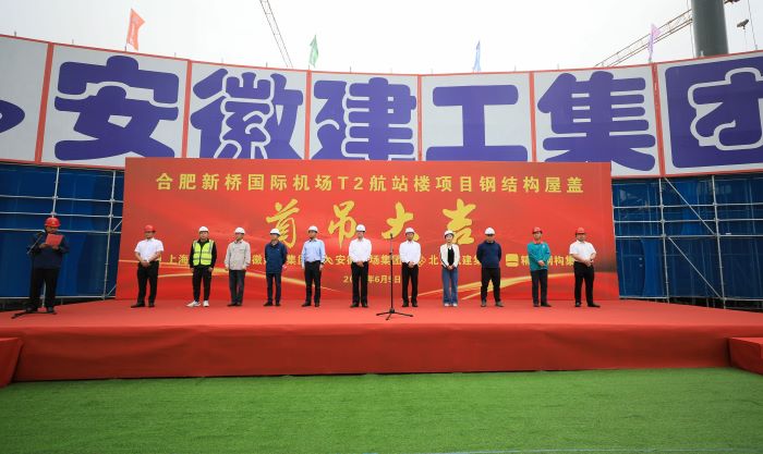 6月5日上午,合肥新橋國際機場(chǎng)改擴建工程項目舉行T2航站樓項目鋼結構屋蓋首吊儀式。安徽民航機場(chǎng)集團總經(jīng)理助理、合肥新橋國際機場(chǎng)改擴建工程建設指揮部副指揮長(cháng)楊永勝,安徽建工集團控股有限公司黨委委員、副總經(jīng)理孫學(xué)軍,合肥新橋國際機場(chǎng)改擴建工程建設指揮部航站區工程部副部長(cháng)胡眾,安建總承包副總經(jīng)理王慶松等參加。