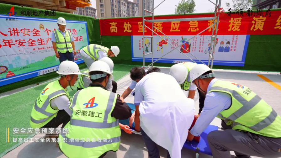 啟動(dòng)儀式結束后,在淮北龍胤府項目施工現場(chǎng)開(kāi)展了高空防墜應急救援演練、觸電應急救援演練,進(jìn)一步檢驗應急預案的可行性、實(shí)用性、可靠性。