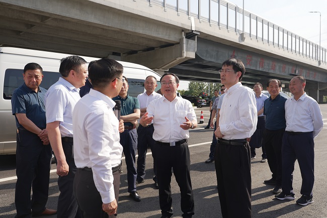 施工現場(chǎng),聶愛(ài)國一行詳細聽(tīng)取了項目工程概況、施工進(jìn)度、建設模式、建設周期等情況匯報,對項目建設取得的成績(jì)給予充分肯定,并進(jìn)一步了解了六安市目前交通建設規劃整體情況。