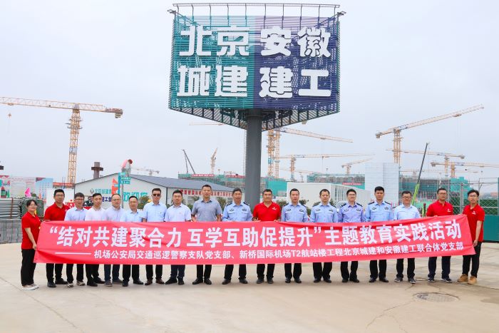近日,安徽建工和北京城建合肥新橋國際機場(chǎng)T2航站樓工程項目黨支部同機場(chǎng)公安局交通巡邏警察支隊黨支部開(kāi)展“結對共建聚合力 互學(xué)互助促提升”主題教育實(shí)踐活動(dòng)。