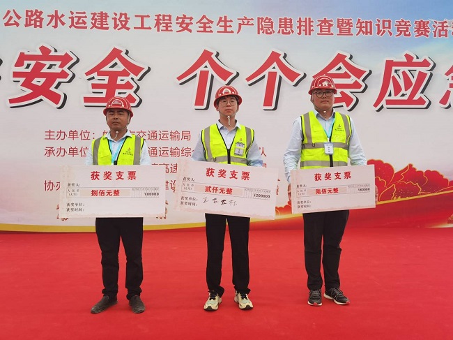 6月19日,在蚌埠市交通運輸局舉辦的“安全生產(chǎn)月”全市公路水運建設工程安全生產(chǎn)隱患排查暨知識競賽活動(dòng)中,建設投資集團五蒙高速05標項目喜獲團隊二等獎,項目安全部部長(cháng)高亞慶、副部長(cháng)楊大朋分別榮獲個(gè)人二等獎和三等獎的優(yōu)異成績(jì)!