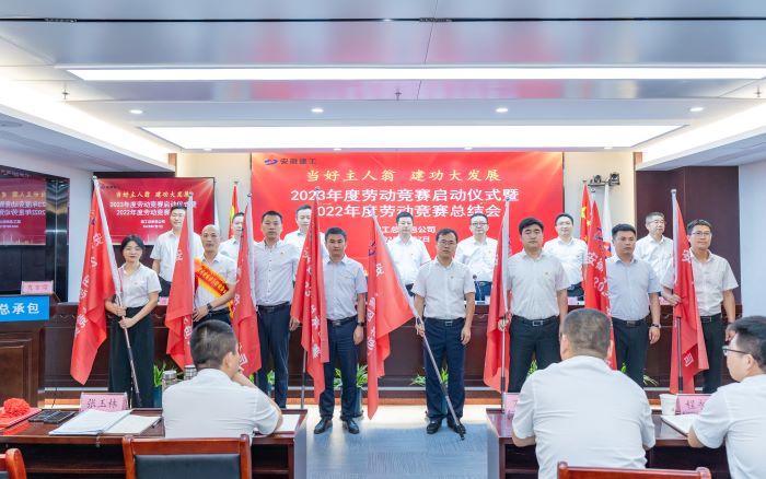 會(huì )議通報2023年度勞動(dòng)競賽方案并向參賽單位授旗。合肥建投(合肥公司)代表參賽單位進(jìn)行勞動(dòng)競賽宣誓。渦河建投(第一公司)和阜南縣中醫院新區二期工程項目部分別代表優(yōu)勝單位、項目部作經(jīng)驗交流。