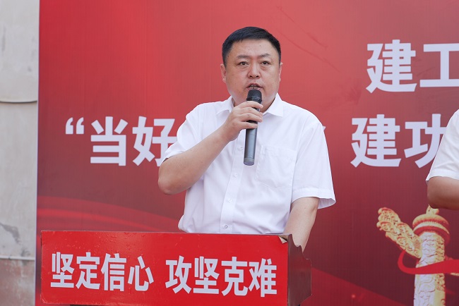 紅色七月承初心,蓄力大干踐使命。為加快項目建設,踐行主題教育,奮力譜寫(xiě)企業(yè)高質(zhì)量發(fā)展新篇章,2023年7月11日上午9時(shí),建工建投集團金寨路高架橋綁寬項目舉行“當好主人翁 建功大發(fā)展”勞動(dòng)競賽暨“百日攻堅”誓師大會(huì )啟動(dòng)儀式。公司黨委書(shū)記、董事長(cháng)任杰,黨委委員、副總經(jīng)理、總工程師陳莘,黨委委員、副總經(jīng)理王秋華等出席活動(dòng),安建交建公司班子成員參加活動(dòng),啟動(dòng)儀式由安建交建公司黨支部書(shū)記劉韌主持。