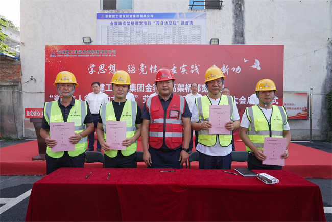 啟動(dòng)儀式上,金寨路高架橋綁寬項目項目總工宣讀“當好主人翁 建功大發(fā)展”勞動(dòng)競賽暨“百日攻堅”活動(dòng)方案,開(kāi)展了授旗儀式及宣誓活動(dòng),各勞務(wù)班組向項目簽訂并遞交了承諾書(shū)。金寨路高架橋綁寬項目項目經(jīng)理作表態(tài)發(fā)言。