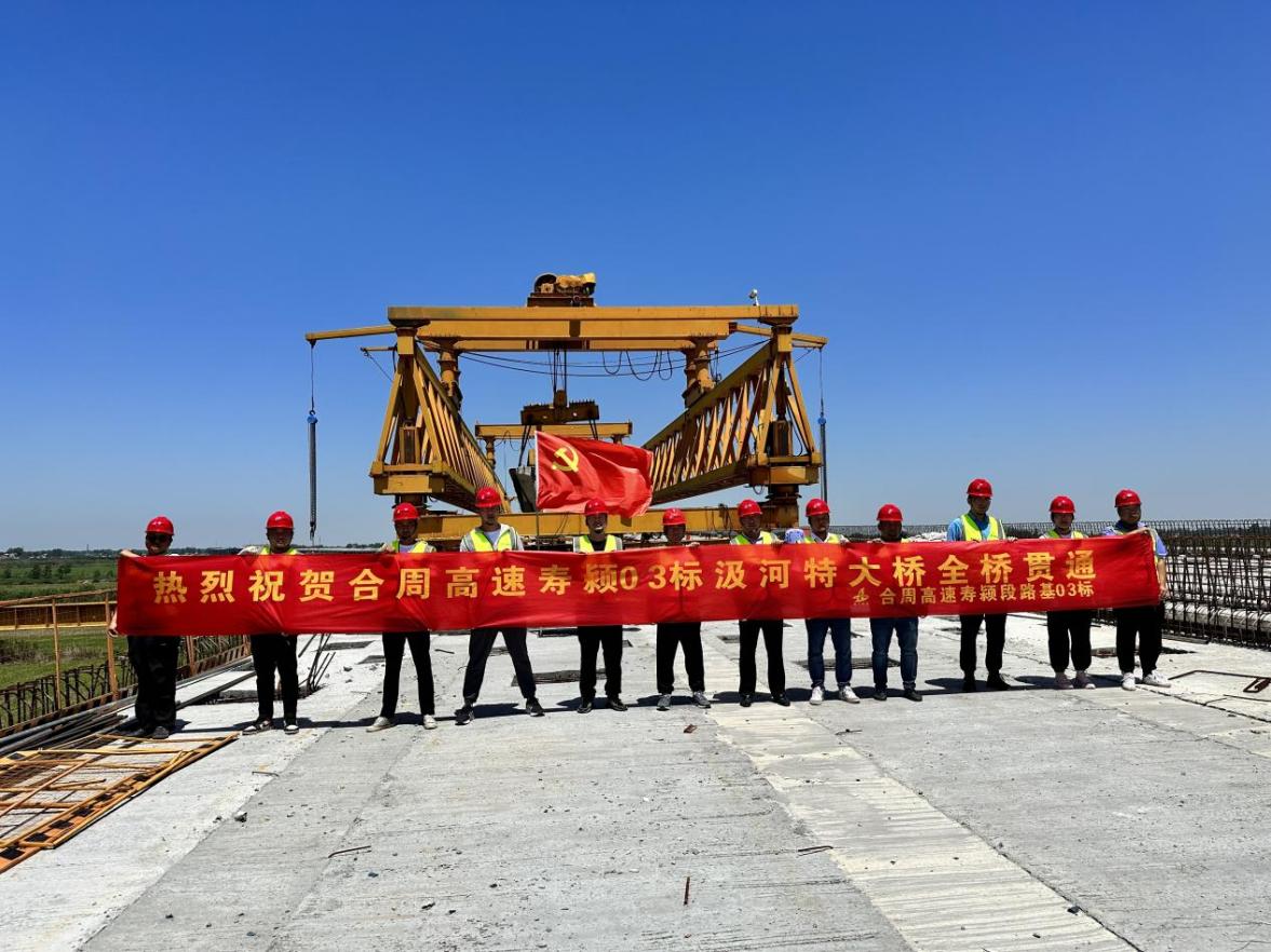 在經(jīng)過(guò)383個(gè)日夜的連續奮戰后,合周高速壽潁段路基03標項目汲河特大橋全橋貫通,項目建設接近尾聲。
