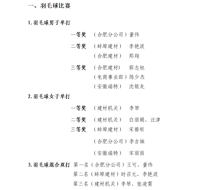 本屆運動(dòng)會(huì )運動(dòng)會(huì )設羽毛球、乒乓球、籃球三個(gè)競賽項目七個(gè)組別,共有11個(gè)代表隊約160人參賽,是公司全面開(kāi)啟“千億建材產(chǎn)業(yè)”新征程之際舉辦的一次綜合性體育盛會(huì ),賽事活動(dòng)之多、參與熱情之高、競技氛圍之濃為歷屆之最。運動(dòng)員們頑強拼搏、超越自我,充分展現了建工建材人良好的精神風(fēng)貌和時(shí)代風(fēng)采。