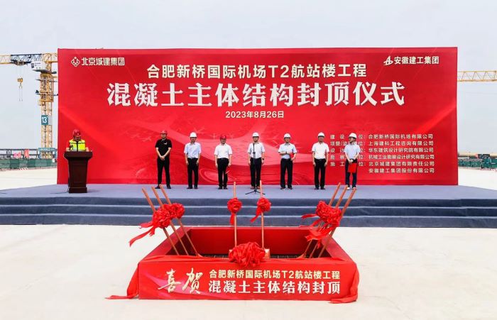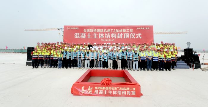 8月26日上午11點(diǎn)16分,合肥新橋國際機場(chǎng)T2航站樓施工總承包工程混凝土主體結構封頂,比原計劃提前2個(gè)月,至此,項目全面進(jìn)入二次結構、鋼結構、機電等專(zhuān)業(yè)施工階段。