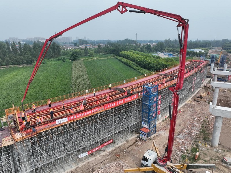 8月25日,在建工投資徐淮阜高速淮北段劉橋互通施工現場(chǎng),數十名工人開(kāi)始澆筑首件現澆梁,標志著(zhù)淮北高速項目正式進(jìn)入橋梁上部結構施工階段,項目建設再進(jìn)一步。