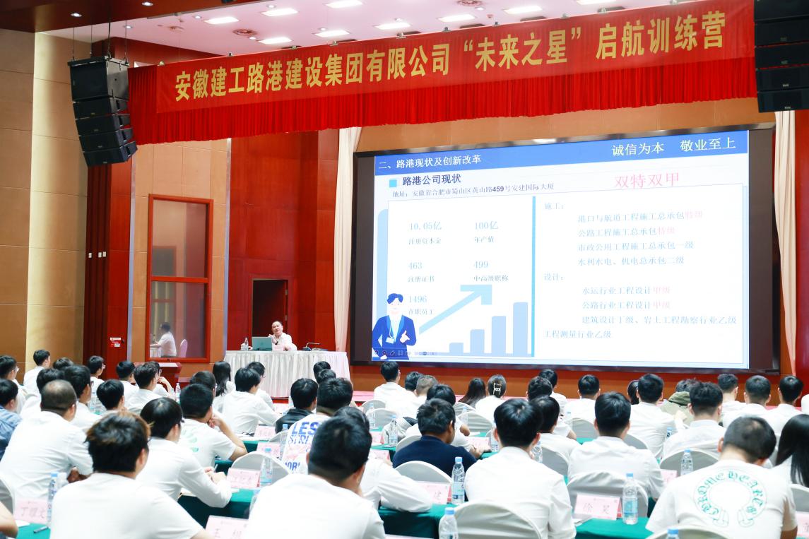 9月24日下午,建工路港集團在合肥舉辦“未來(lái)之星”啟航訓練營(yíng)開(kāi)營(yíng)儀式暨公司領(lǐng)導與新員工集體見(jiàn)面會(huì ),公司在家領(lǐng)導和140余名今年新入職的高校畢業(yè)生參加。開(kāi)營(yíng)儀式后,公司黨委書(shū)記、董事長(cháng)錢(qián)葉琳為新員工講授第一課。