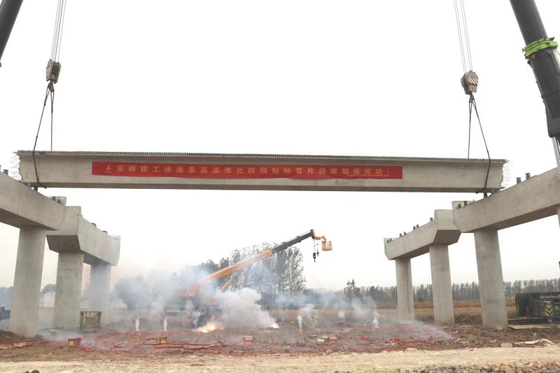 10月10日上午,在建工投資徐淮阜高速淮北段項目上跨S411橋梁施工現場(chǎng),隨著(zhù)一聲哨響,兩臺吊車(chē)同時(shí)轟鳴作業(yè),將25米長(cháng)、80噸重的一片箱梁吊起,十幾分鐘后,首片預制箱梁穩穩落在蓋梁上,標志著(zhù)本項目正式拉開(kāi)箱梁架設施工序幕。