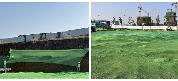 施工過(guò)程中,項目部以精細化管理為契機,積極推廣使用節能新產(chǎn)品,助力節能減排、降本增效。一是嚴格落實(shí)綠色施工理念,合理布置現場(chǎng)規劃,統籌考慮臨時(shí)設施和永久性設施,有效優(yōu)化施工工序,將施工過(guò)程中用到的部分臨時(shí)設施與永久性設施一次性施工,達到降低碳排放、縮短工期、減少資源浪費的目的。二是嚴格按照標準要求配置現場(chǎng)設備,建設廢水收集系統,配置沖洗平臺、噴淋系統(圍擋、高桿、塔吊)、作業(yè)區霧炮、大陽(yáng)能路燈等設備,為項目綠色施工提供有力保障;三是嚴格執行裸土區域全覆蓋舉措,組織項目部管理人員對土方作業(yè)裸土區域鋪設防塵網(wǎng),累計鋪設面積達到3.4萬(wàn)余平,有效降低揚塵污染。