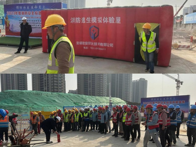 會(huì )后,項目部開(kāi)展了消防安全逃生演練,演練模擬辦公區域突發(fā)火情情景,實(shí)地傳授防范措施、火災撲救方法、火場(chǎng)人員疏散和自救逃生方法等。