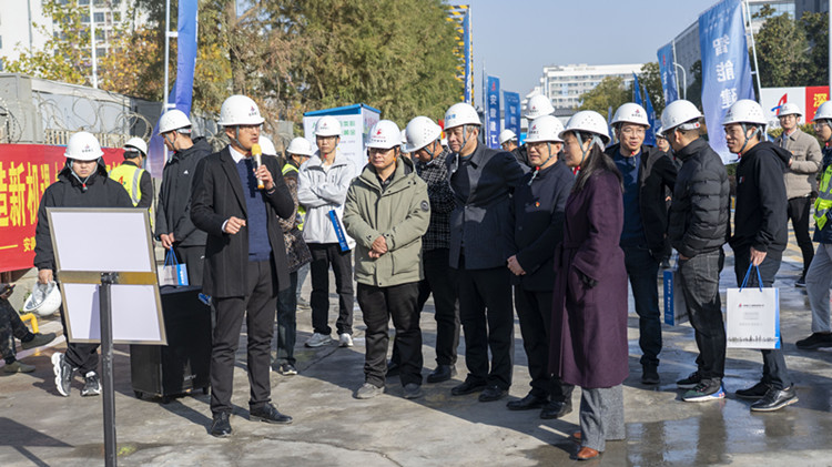 12月7日上午,由合肥新站高新區建設發(fā)展局、合肥市建筑質(zhì)量安全監督站新站區分站主辦,安徽建工三建集團有限公司承辦的“智不可擋 造就未來(lái)”智能建造觀(guān)摩活動(dòng)在合肥職業(yè)技術(shù)學(xué)院建設項目順利舉行,新站高新區建筑質(zhì)量安全監管中心主任許冬至、新站高新區各施工單位相關(guān)負責人約50余人參加觀(guān)摩會(huì )。