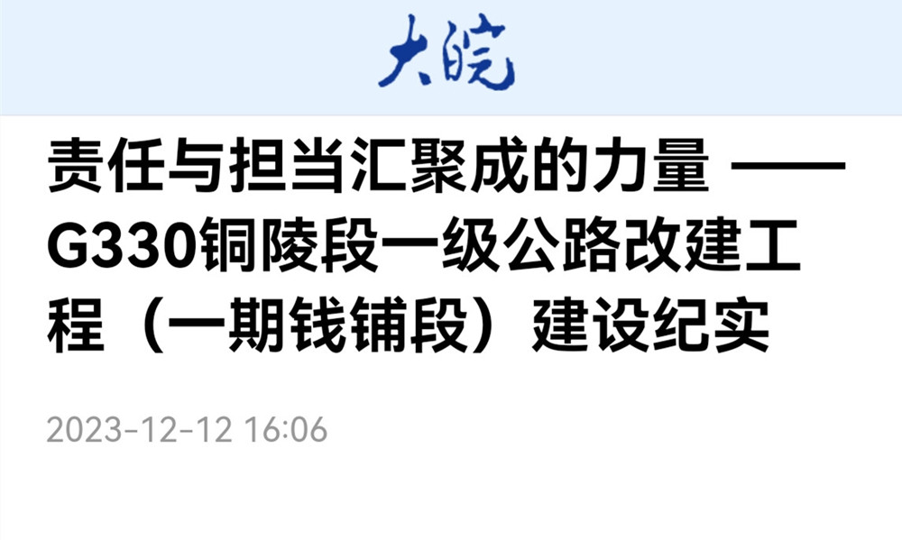 近日,安徽網(wǎng)銅陵新聞以“責任與擔當匯聚成的力量”為題,對建工建投集團G330銅陵段一級公路改建工程(一期錢(qián)鋪段)建設進(jìn)行了紀實(shí)報道。