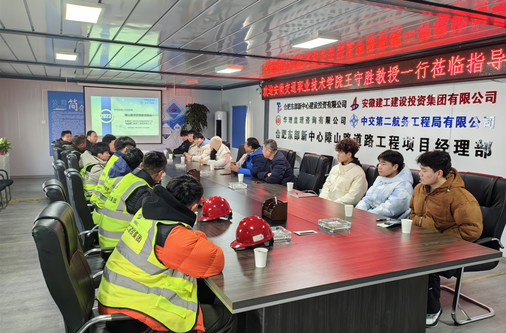 12月27日上午,安徽交通職業(yè)技術(shù)學(xué)院道路與鐵道工程教研室主任、土木工程系副主任王守勝副教授及學(xué)生一行走進(jìn)合肥東部新中心障山路道路工程施工項目進(jìn)行觀(guān)摩交流。