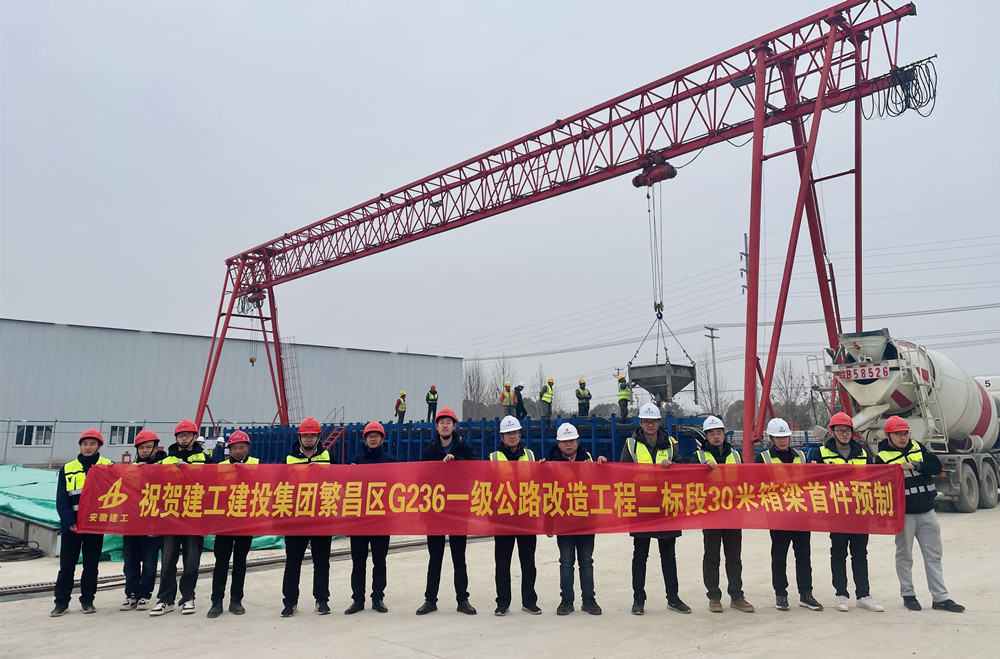1月2日下午,建工建投集團繁昌區G236阮弄口至銅陵界一級公路改造工程施工項目首件30米箱梁順利澆筑完成,標志著(zhù)項目建設正式進(jìn)入箱梁預制階段。