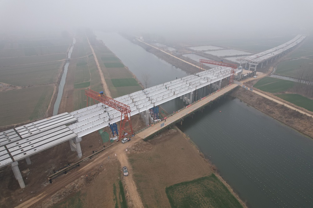 【全力沖刺“開(kāi)門(mén)紅” 】建工建投集團合周高速潁臨段YL-LJ02標項目陶孜河特大橋跨陶孜河段主橋鋼板組合梁架設完成