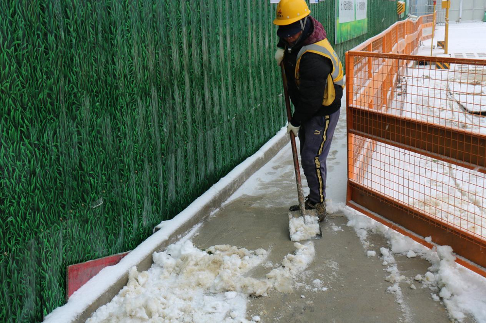 再次面對寒潮,商機廠(chǎng)租賃住房項目第一時(shí)間組織人員清理辦公區、生活區、施工現場(chǎng)道路的積雪,鋪設防滑草袋,確保惡劣天氣條件下項目各工作安全有序推進(jìn)。