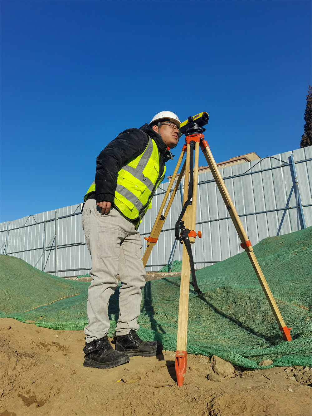“傾心于事業(yè),專(zhuān)注于崗位,以實(shí)際行動(dòng)詮釋愛(ài)崗敬業(yè)!”測量員葉杰站在基坑邊進(jìn)行測量工作。