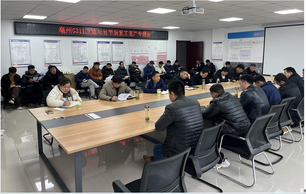 亳州G311改建項目已召開(kāi)節后復工復產(chǎn)專(zhuān)題會(huì ),項目員工目前已全部到崗,正立足崗位,恪盡職守,為全面復工復產(chǎn)兢兢業(yè)業(yè)做好本職工作。