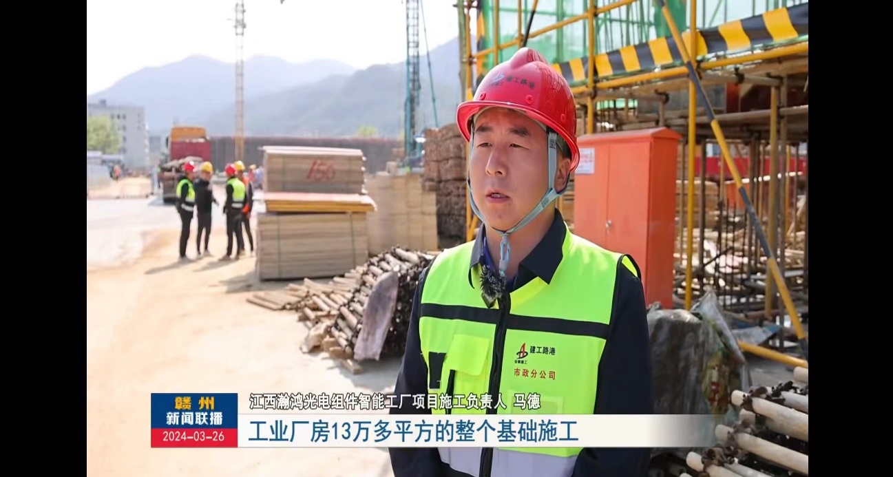 3月26日,贛州電視臺對建工路港承建的全南縣新能源產(chǎn)業(yè)園標準廠(chǎng)房項目進(jìn)行了專(zhuān)題報道,內容在《新聞聯(lián)播》欄目播出。