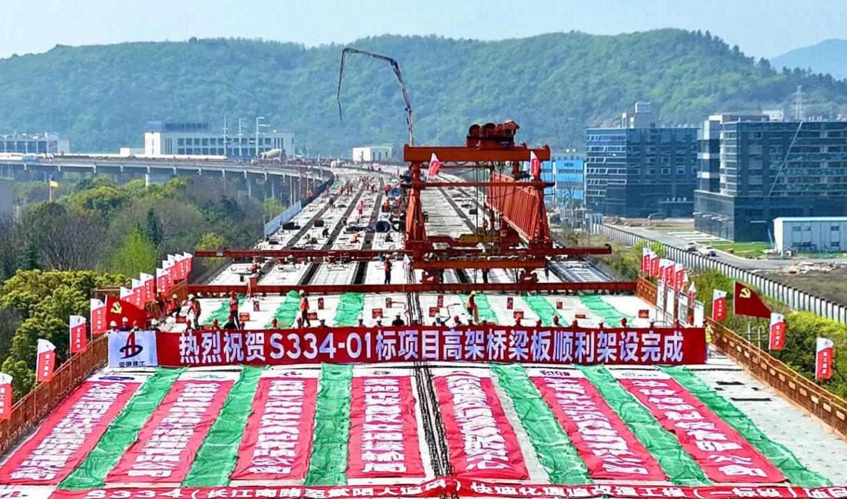 【競速前行 節點(diǎn)突破】建工路港S334項目順利完成高架橋梁板架設