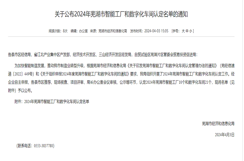 近日,蕪湖市經(jīng)濟和信息化局公布了2024年蕪湖市智能工廠(chǎng)和數字化車(chē)間認定名單,建工鋼構蕪湖公司榜上有名。