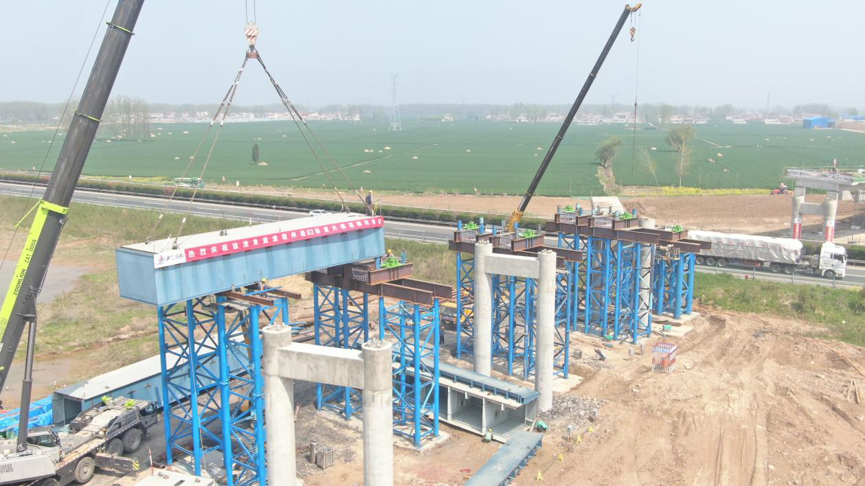 4月8日,一塊長(cháng)17.38米、重46.45噸的“鋼鐵巨獸”穩穩的落在徐淮阜高速宿州段路基工程02標孫圩子互通GK1+275.5匝道橋的支架上。該鋼箱梁吊裝完成標志著(zhù)項目正式進(jìn)入鋼箱梁快速施工階段。