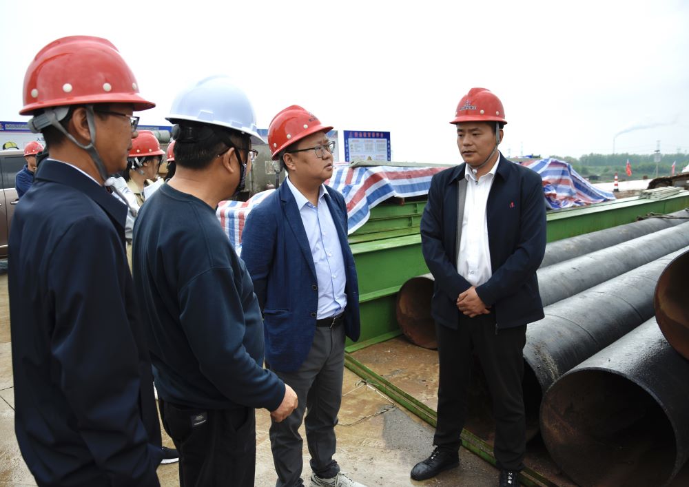 在黃滸河特大橋建設現場(chǎng),程軼一行詳細查看了工程進(jìn)展,認真聽(tīng)取了項目負責人關(guān)于工程概況、建設進(jìn)度及重難點(diǎn)問(wèn)題的匯報,就施工進(jìn)度、質(zhì)量控制、安全環(huán)保等關(guān)鍵環(huán)節與項目負責人進(jìn)行了深入交流,并對項目及團隊建設給予充分肯定。