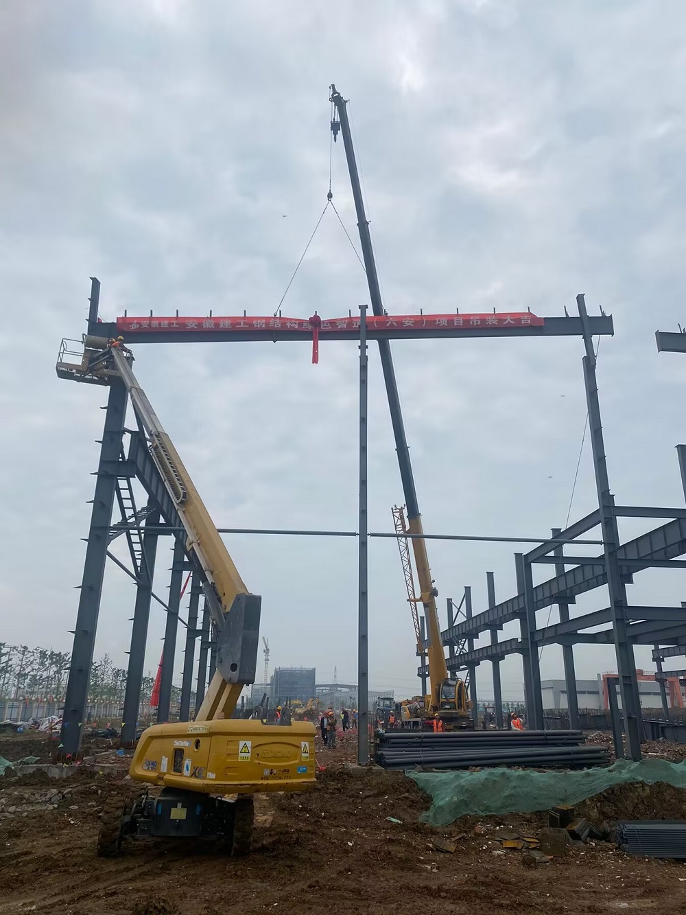 【提速奮戰二季度】建工安裝安徽建工鋼結構綠色智造(六安)項目順利開(kāi)始“大跨度屋面梁吊裝作業(yè)”