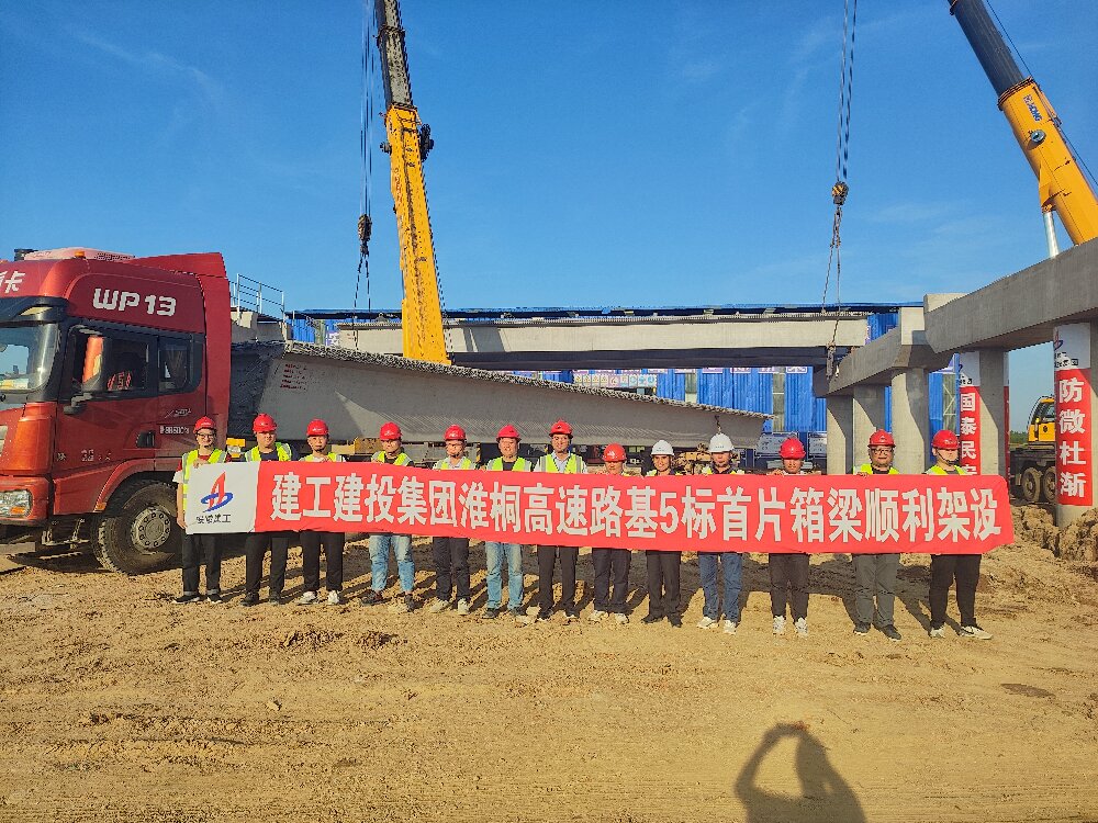 淮桐高速05標項目首片預制箱梁順利架設