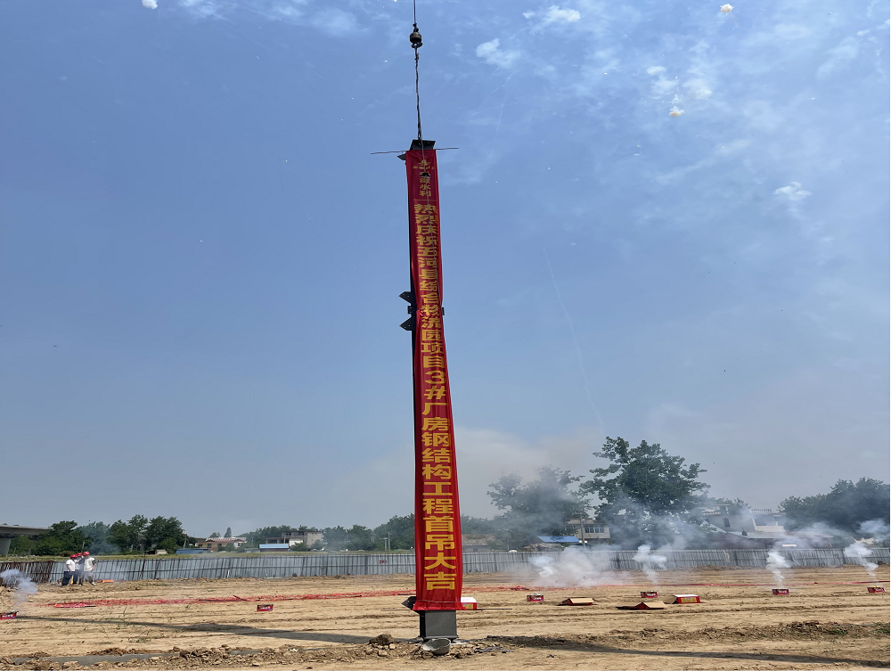建工機械綜合物流園項目鋼結構工程3#廠(chǎng)房鋼柱首吊大吉