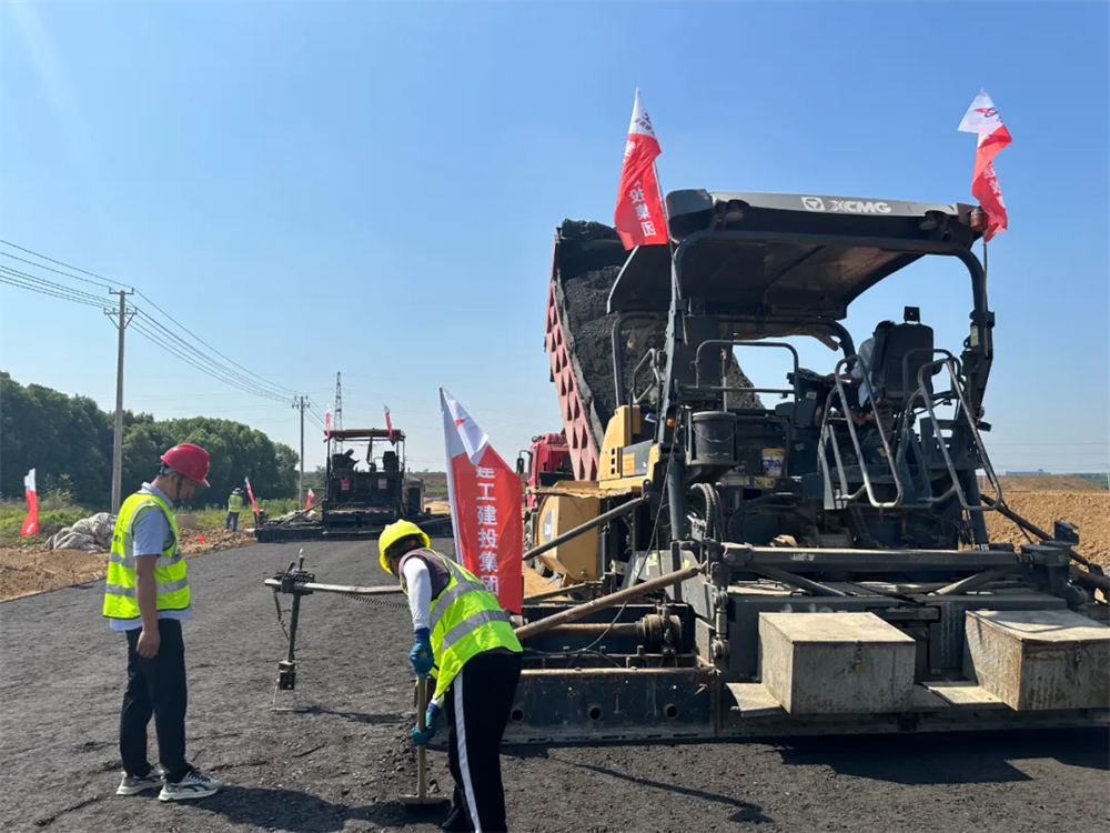 為確保黃店路現場(chǎng)水穩攤鋪施工的進(jìn)度和質(zhì)量,一分公司官亭項目施工現場(chǎng)機器轟鳴,人聲鼎沸,一派繁忙景象。建設者們利用周末晴好天氣,加班加點(diǎn)搶抓施工進(jìn)度。同時(shí),項目嚴格把控安全質(zhì)量管理,做到人人身上有任務(wù),個(gè)個(gè)肩上有責任。目前,項目已完成水穩攤鋪500米。
