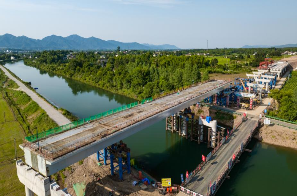近日,安徽水利承建的涇青高速青弋江特大橋第三聯(lián)右幅鋼箱梁順利頂推就位。