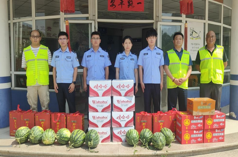 活動(dòng)中,項目部人員向堅守崗位的一線(xiàn)公安民、輔警及交警同志表示敬意,對其為項目生產(chǎn)保駕護航表示感謝,并為他們送去礦泉水、西瓜、飲料等慰問(wèn)品,讓他們在炎炎夏日中感受到絲絲清涼。過(guò)程中,雙方對全國安全生產(chǎn)月活動(dòng)進(jìn)行交流。