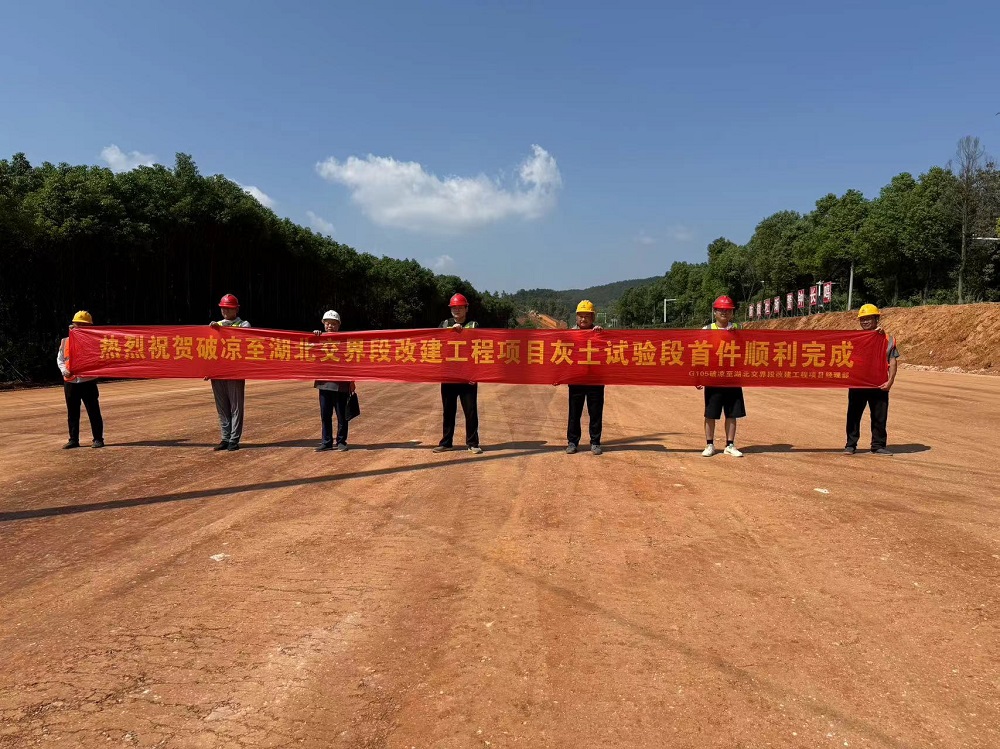 建工建投集團G105破涼至湖北交界段改建工程項目首個(gè)灰土試驗段成功鋪筑