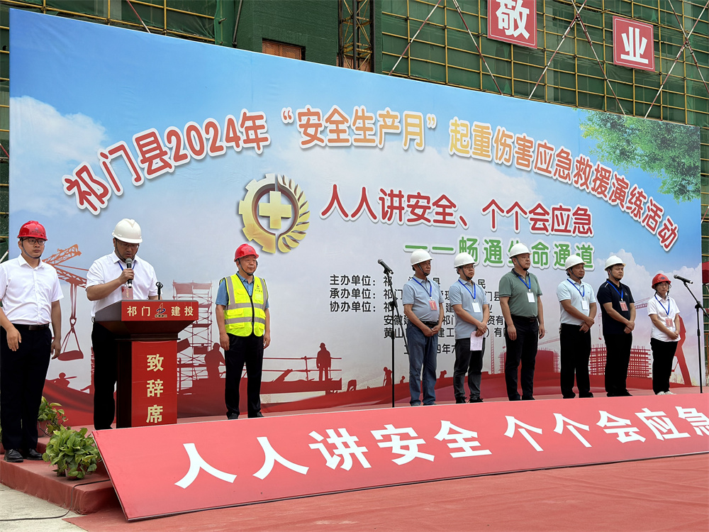 以“練”促防,安全護航——祁門(mén)縣2024年“安全生產(chǎn)月”起重傷害應急救援演練活動(dòng)在建工建投集團祁門(mén)低碳科創(chuàng )園項目順利開(kāi)展