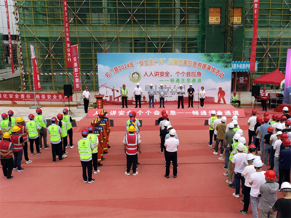 6月18日,祁門(mén)縣2024年“安全生產(chǎn)月”起重傷害應急救援演練活動(dòng)在祁門(mén)低碳科創(chuàng )園項目順利開(kāi)展。祁門(mén)縣人民政府、祁門(mén)縣應急管理局、祁門(mén)縣住建局、祁門(mén)縣建筑業(yè)協(xié)會(huì )的相關(guān)領(lǐng)導,以及祁門(mén)縣內施工企業(yè)負責人、分管安全工作負責人、安全員和在建工程項目經(jīng)理、外地施工企業(yè)項目負責人和安全員、在建工程監理負責人和建設開(kāi)發(fā)項目負責人約200人現場(chǎng)觀(guān)摩。