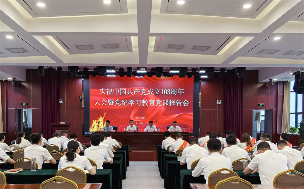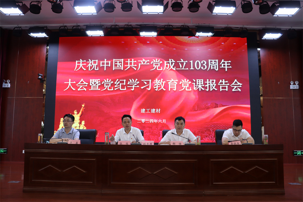 光輝歷程映初心,砥礪奮進(jìn)建新功。6月28日,建工建材召開(kāi)慶祝中國共產(chǎn)黨成立103周年大會(huì )暨黨紀學(xué)習教育黨課報告會(huì )。建工建材黨委副書(shū)記、總經(jīng)理張俊出席會(huì )議并作專(zhuān)題紀律黨課,黨委委員、副總經(jīng)理、工會(huì )主席邵佳主持會(huì )議,領(lǐng)導班子成員出席會(huì )議。