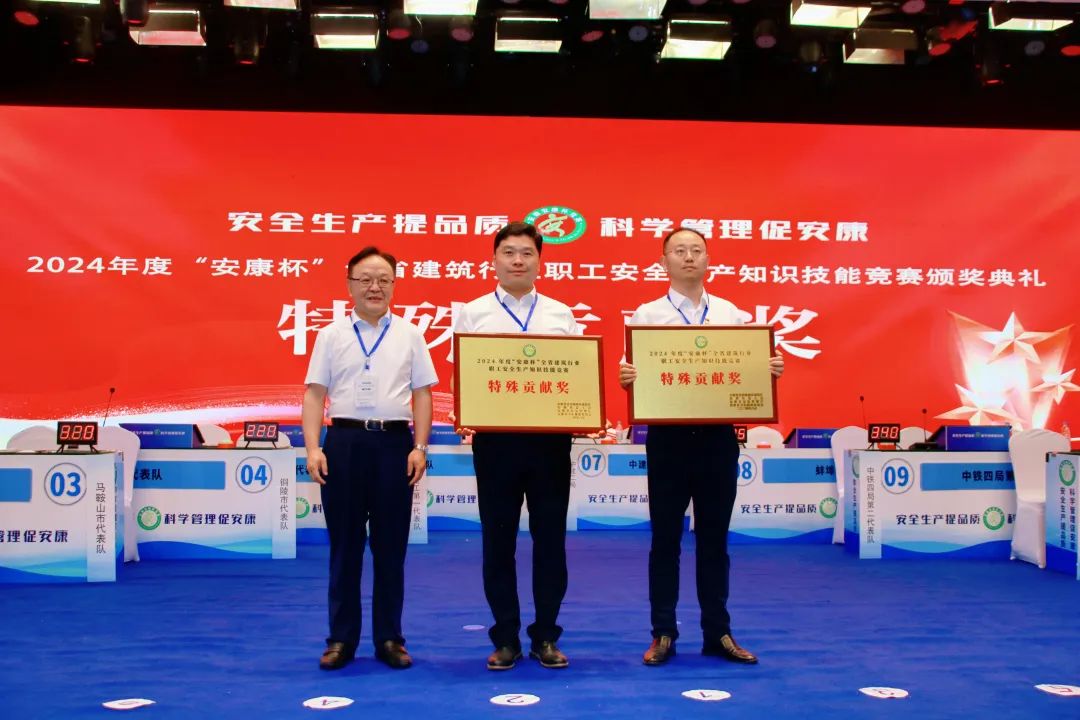 6月26日至28日,由安徽省住房和城鄉建設廳、安徽省總工會(huì )、安徽省應急管理廳、安徽省衛生健康委員會(huì )聯(lián)合主辦的2024年度“安康杯”全省建筑行業(yè)職工安全生產(chǎn)知識技能競賽在安徽水利開(kāi)發(fā)有限公司成功舉辦。安徽省總工會(huì )一級巡視員張文靜,安徽省住房和城鄉建設廳黨組成員、駐廳紀檢監察組組長(cháng)劉長(cháng)華,建工控股黨委委員、副總經(jīng)理陳仁虎,安徽省應急管理廳、安徽省衛生健康委員會(huì )等相關(guān)部門(mén)負責人,建工股份副總經(jīng)理、安徽水利黨委書(shū)記、董事長(cháng)張鍵出席決賽現場(chǎng)。各市建設主管部門(mén),省級建筑、裝飾、市政、監理、燃氣、物業(yè)等行業(yè)協(xié)會(huì ),安徽建工集團等省屬企業(yè)、駐皖央企及特級施工企業(yè)負責人,四川、湖南等省質(zhì)量安全協(xié)會(huì )部分同志現場(chǎng)觀(guān)摩了決賽。