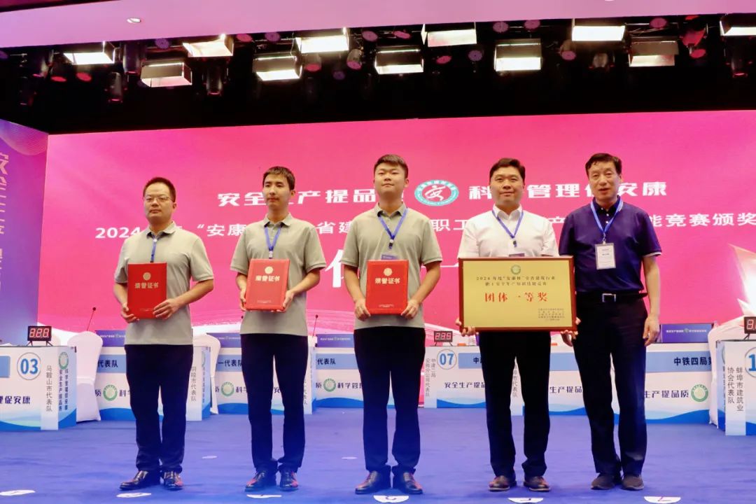 來(lái)自全省的32支代表隊,經(jīng)過(guò)為期2天的預賽和決賽激烈角逐,蚌埠市建筑業(yè)協(xié)會(huì )代表隊榮獲團體一等獎,蚌埠市代表隊和安徽水利代表隊榮獲團體二等獎,中鐵四局二隊、安徽建工一隊、安徽建工二隊、阜陽(yáng)市代表隊榮獲團體三等獎。安徽水利開(kāi)發(fā)有限公司、蚌埠市建筑業(yè)協(xié)會(huì )榮獲特殊貢獻獎,蚌埠市建筑業(yè)協(xié)會(huì )代表隊劉勇榮獲個(gè)人一等獎,蚌埠市代表隊關(guān)心、安徽水利代表隊陳騫榮獲個(gè)人二等獎。