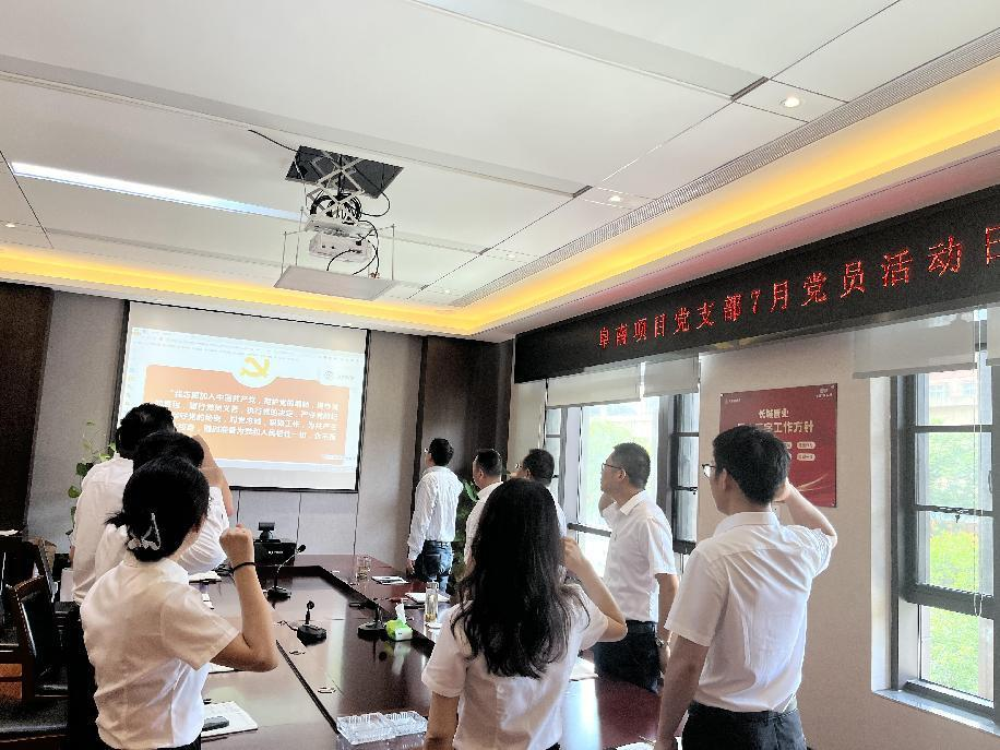 阜南項目黨支部組織全體黨員及發(fā)展對象開(kāi)展慶祝建黨103周年主題黨日活動(dòng),重溫入黨誓詞,強化黨員意識。全體黨員莊重地進(jìn)行了入黨宣誓,共同重溫入黨誓詞。這莊嚴神圣的誓詞,深深地觸動(dòng)了在場(chǎng)的每一位黨員,進(jìn)一步堅定了他們?yōu)楣伯a(chǎn)主義事業(yè)奮斗終身的理想信念和決心。