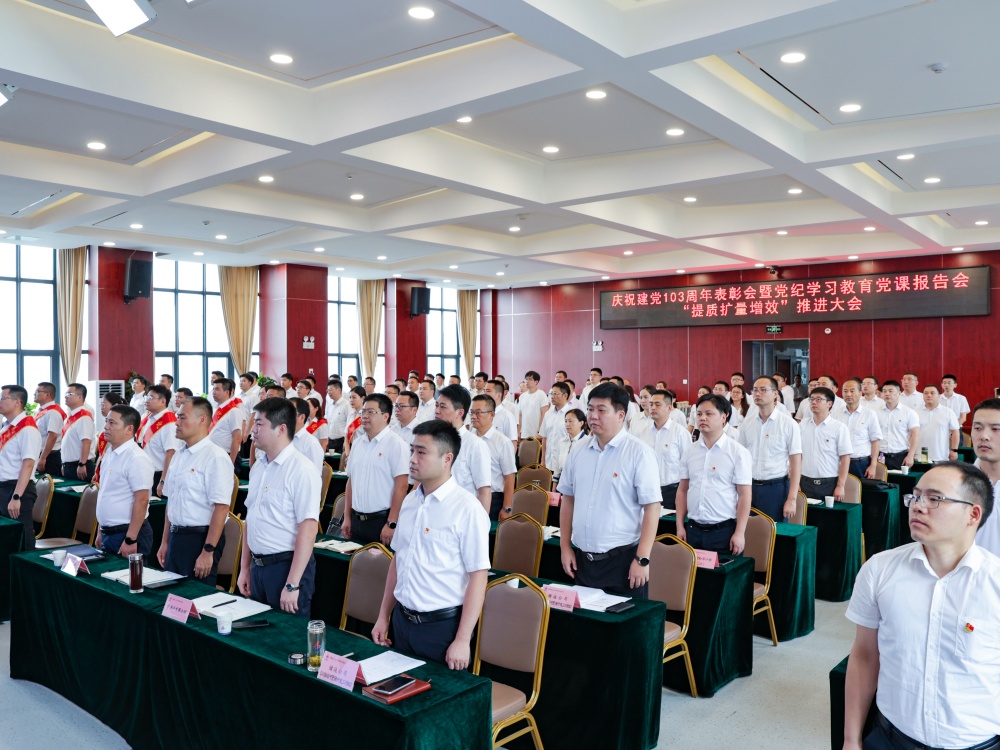 7月6日周六,建工商貿物流黨委多會(huì )合一分階段召開(kāi)慶祝建黨103周年表彰會(huì )暨黨紀學(xué)習教育黨課報告會(huì )、警示教育大會(huì )和“提質(zhì)擴量增效”推進(jìn)大會(huì )。建工股份副總經(jīng)理、公司黨委書(shū)記、董事長(cháng)張沖作黨紀學(xué)習教育黨課報告并部署提質(zhì)擴量增效工作,黨委副書(shū)記、副總經(jīng)理黃麗春主持會(huì )議,紀委書(shū)記韓旭作警示教育報告,副總經(jīng)理朱敏等安排工作。