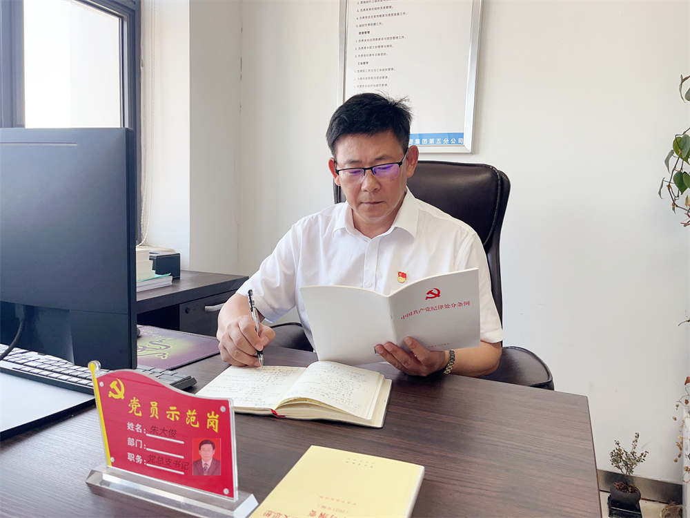 作為黨總支書(shū)記,朱大俊始終以黨組織建設標準化為抓手,嚴格按照上級安排,認真履行崗位職責,在項目支部工作規范化、標準化方面做了大量細致的工作,進(jìn)一步規范了基層黨支部“三會(huì )一課”、“主題黨日”等組織生活開(kāi)展方式,不斷增強了黨組織的凝聚力,發(fā)揮黨支部的戰斗堡壘作用,真正做到“干一行,愛(ài)一行,專(zhuān)一行”。在項目調研、包保期間,他常?!皠?dòng)之以情、導之以行、曉之以理、持之以恒”,對于員工關(guān)于工作、生活的困惑,他都一一記錄整理并解答。日常工作中,他憑借真、實(shí)、細、快的工作方式,為黨務(wù)工作奠定了良好的基礎,在平凡的崗位上展現出一名優(yōu)秀黨務(wù)工作者的風(fēng)采。
