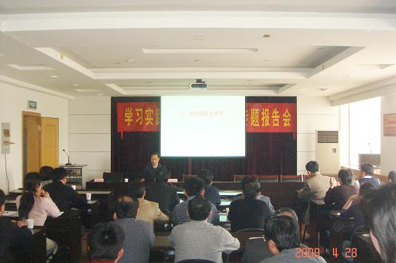 4月28日下午,按照學(xué)習實(shí)踐科學(xué)發(fā)展觀(guān)活動(dòng)學(xué)習調研階段的總體安排,由安徽九華房地產(chǎn)開(kāi)發(fā)有限公司牽頭,安徽建工集團直屬經(jīng)濟實(shí)體舉辦學(xué)習實(shí)踐科學(xué)發(fā)展觀(guān)專(zhuān)題報告會(huì ),集團公司第三指導督查組,直屬經(jīng)濟實(shí)體領(lǐng)導班子成員及全體黨員參加了會(huì )議。