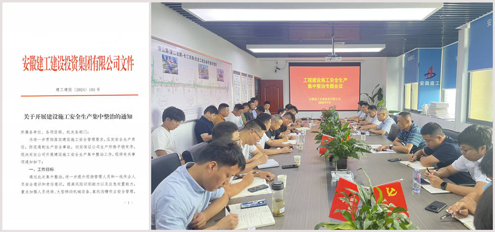 7月12日下午,安徽建工集團召開(kāi)安全生產(chǎn)工作會(huì )議。會(huì )后,公司積極響應、迅速行動(dòng)、主動(dòng)作為,扎實(shí)做好會(huì )議精神的傳達落實(shí)工作。