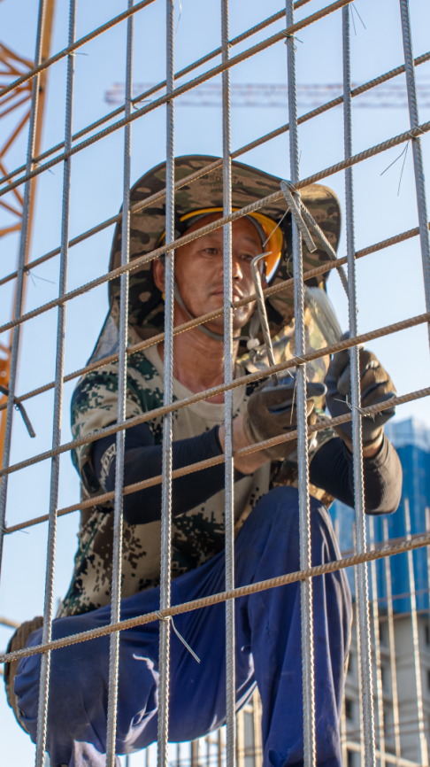 三、鋼筋工:曬得燙手的鋼筋 他們每天要扎近百根(左:程振合;右:李中?。?/span>