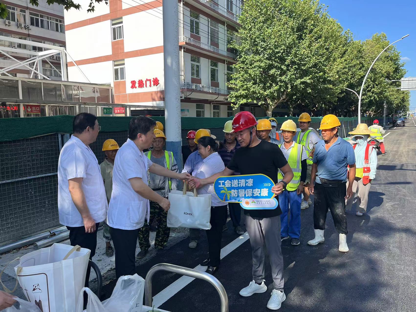 7月29日,蚌埠市第一人民醫院黨委書(shū)記袁長(cháng)江帶隊到安徽水利蚌埠市城區道路提升改造項目現場(chǎng)開(kāi)展“送清涼”慰問(wèn)活動(dòng)。