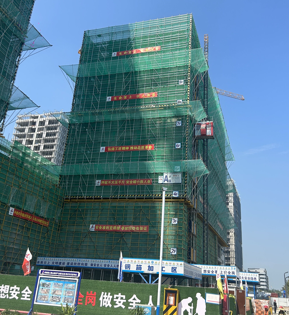 廣建架業(yè)公司自項目開(kāi)工以來(lái),全力服務(wù)項目建設,按照工程施工節點(diǎn)完成近9萬(wàn)平米的腳手架搭設任務(wù),助力該項目三棟主樓主體結構順利封頂,并順利通過(guò)市級示范工地驗收。